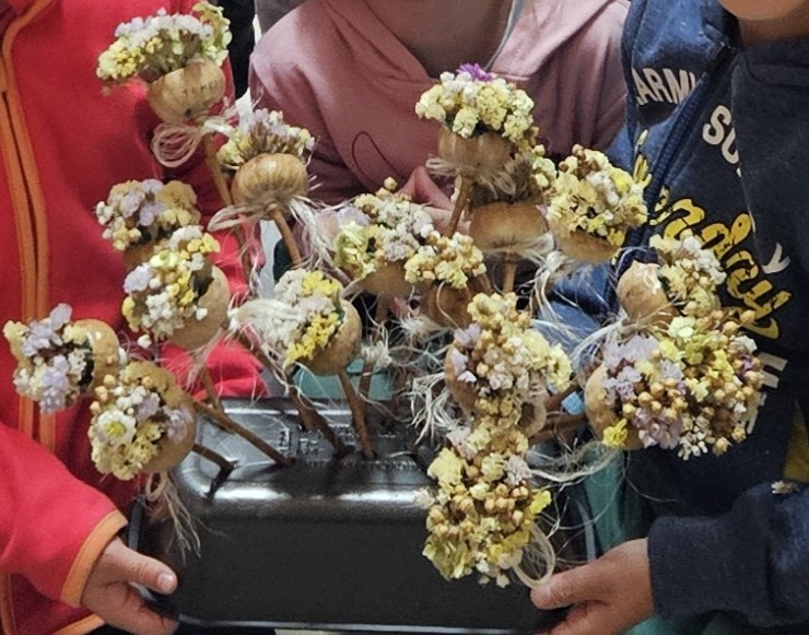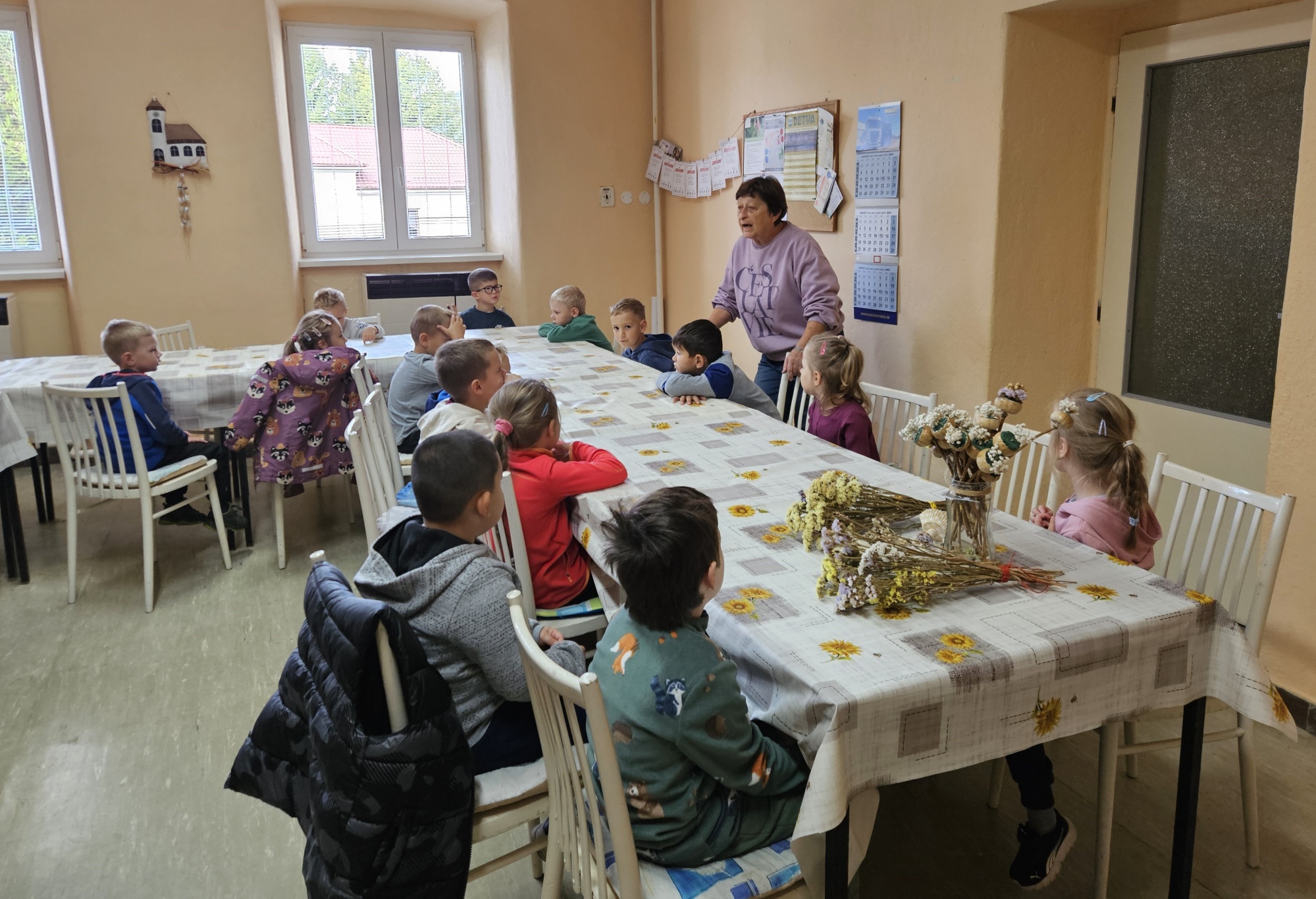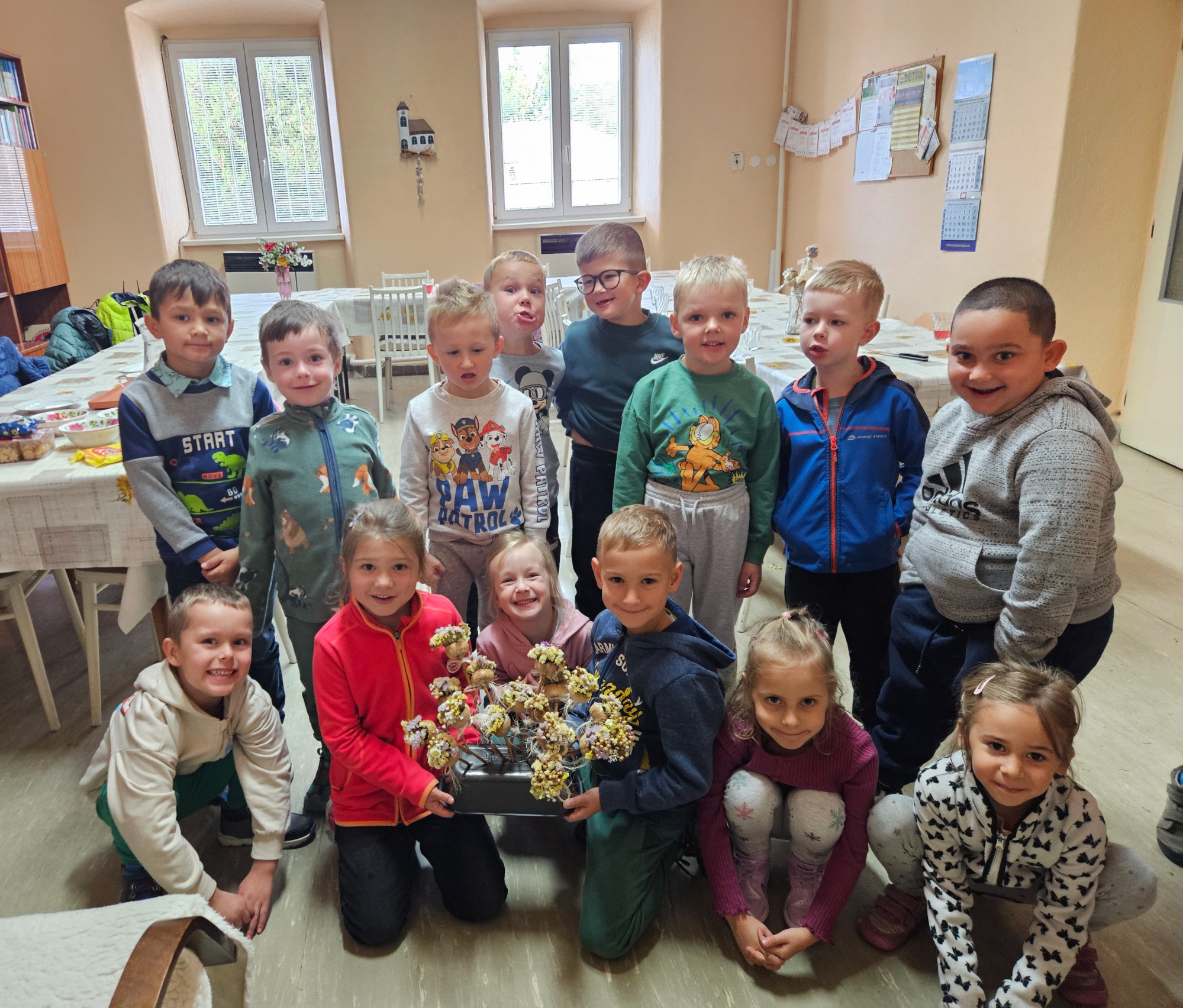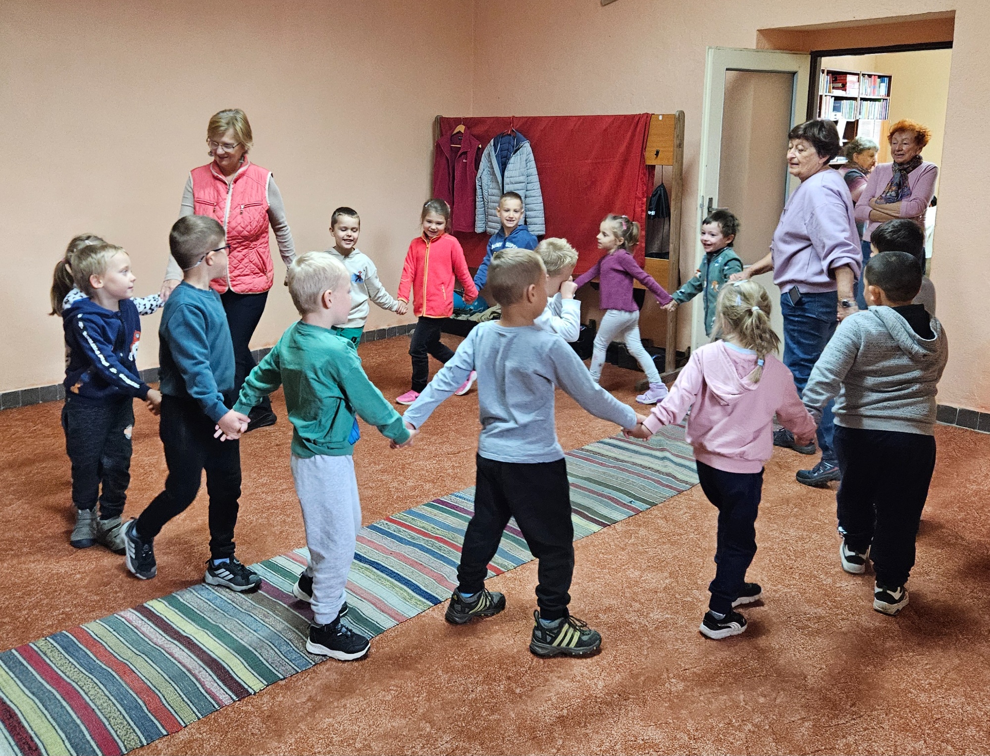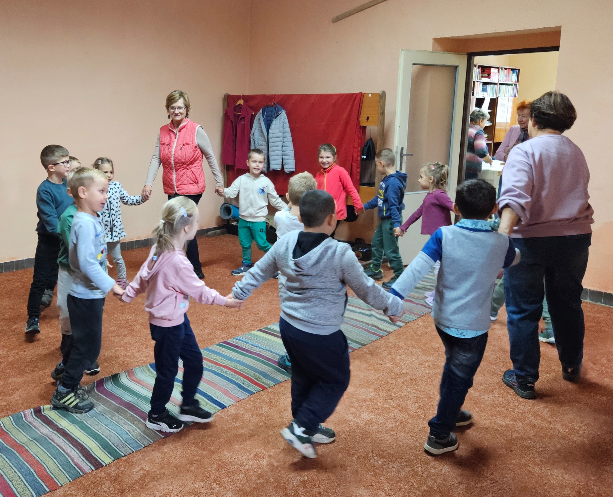 Na úvod sa deti predstavili s krátkym kultúrnym program – zaspievali piesne a zarecitovali básne, čím potešili všetkých prítomných. Potom nasledovali tvorivé dielne, kde z makovičiek, sušených kvetov a ľanu vytvárali prírodné kytičky pre svojich starých rodičov. Milé tety pripravili aj sladké pohostenie so šípkovým čajom. Po občerstvení nasledovalo spoločné hranie hier, spev a tanec, ktoré všetkým priniesli radosť a úsmev na tvári. Deti sa vrátili do materskej školy plné nových zážitkov a dojmov s pocitom radosti z príjemne stráveného dopoludnia so seniorkami z Denného centra.